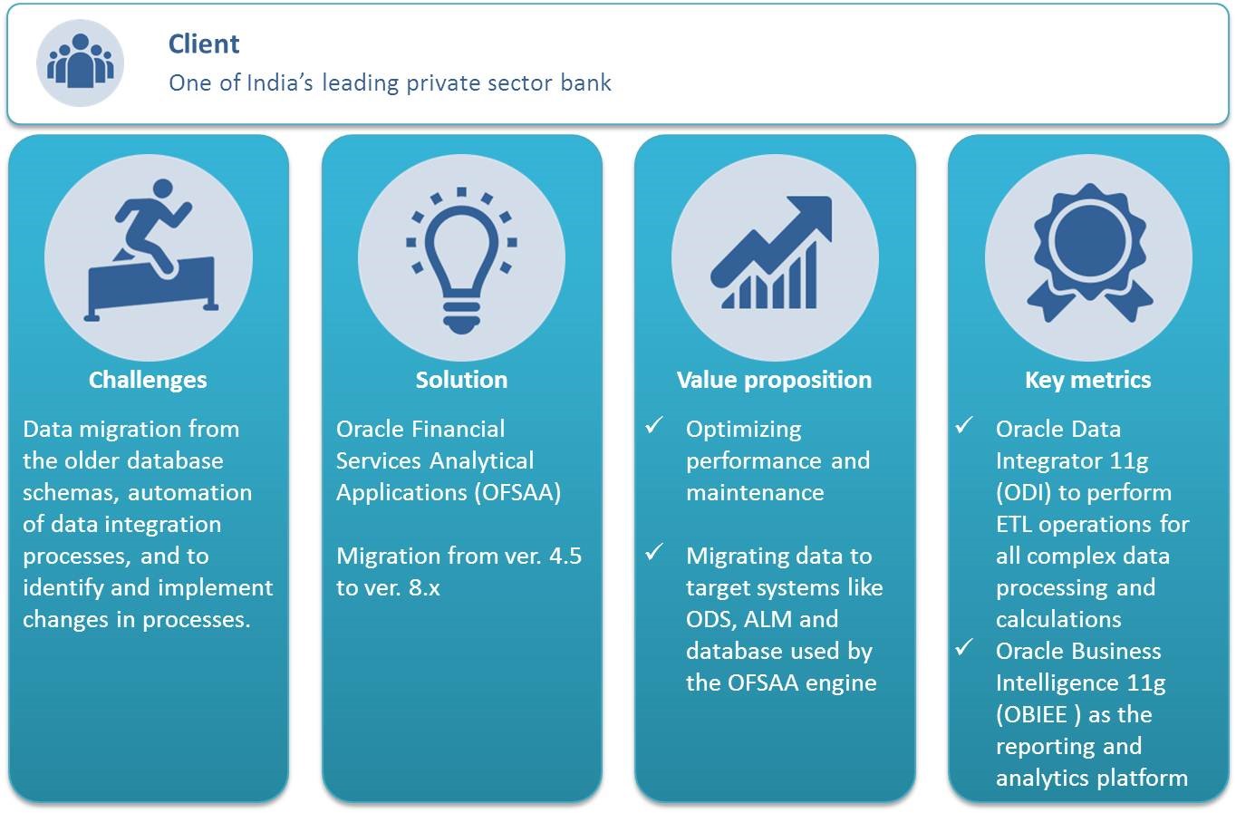 Oracle Technologies expertise: With our expertise in enterprise application integration (Oracle SOA) and also, in business and analytics, we can leverage the best returns out of your Oracle EBS investment by ensuring that the most precise insights possible are derived real-time. These insights add significant business value and positively impact the bottom line.